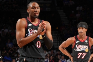 体育资讯4月16日讯 附加赛76人主场迎战魔术,马克西穿着New Balance个人首款签名鞋出战。
